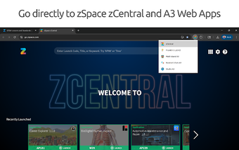 Förutom direktåtkomst till zCentral inkluderar zSpace Web Apps Menu även snabblänkar till webversionerna av Franklin's Lab A3, Math Island A3, Newton's Park A3 och Studio A3. Detta gör det enklare för användare att navigera mellan olika utbildningsresurser och maximera användningen av zSpace-plattformen.